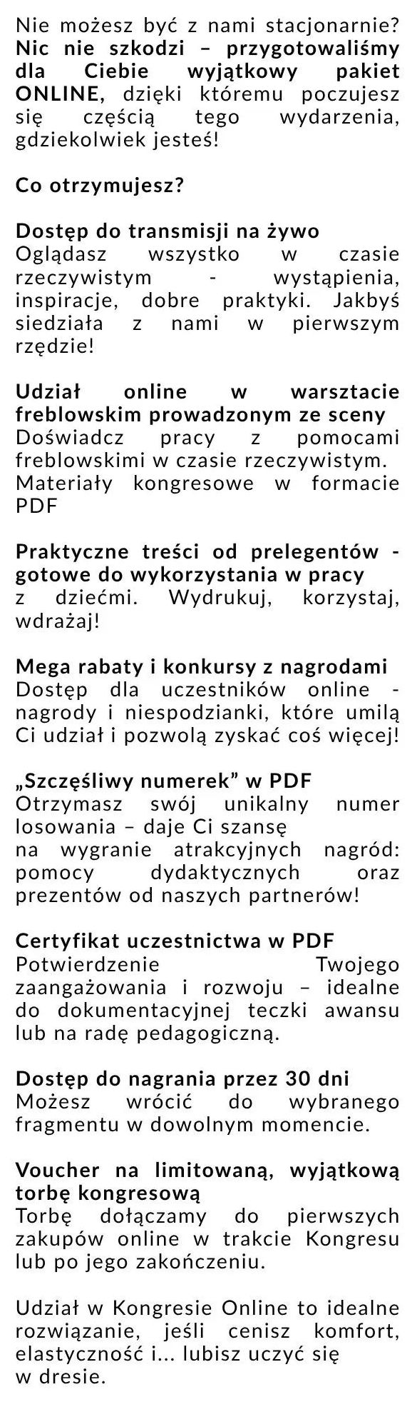 Nie możesz być z nami stacjonarnie? Nic nie szkodzi – przygotowaliśmy dla Ciebie wyjątkowy pakiet ONLINE, dzięki któremu poczujesz się częścią tego wydarzenia, gdziekolwiek jesteś!
